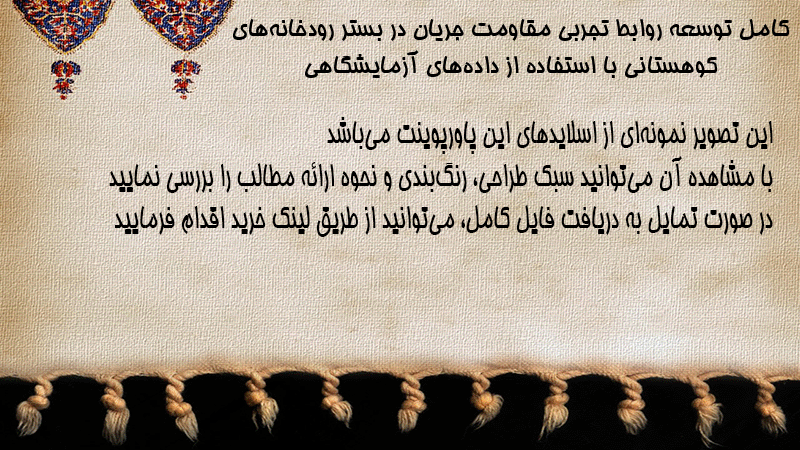 پاورپوینت کامل توسعه روابط تجربی مقاومت جریان در بستر رودخانههای کوهستانی با استفاده از دادههای آزمایشگاهی