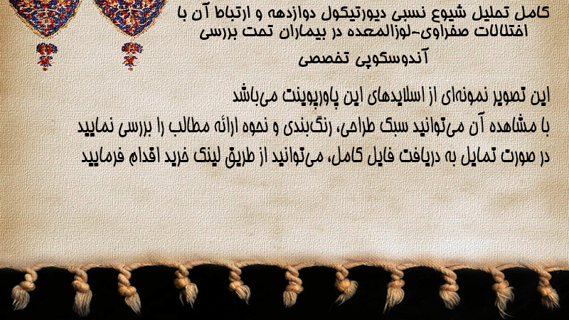 پاورپوینت کامل تحلیل شیوع نسبی دیورتیکول دوازدهه و ارتباط آن با اختلالات صفراوی-لوزالمعده در بیماران تحت بررسی آندوسکوپی تخصصی