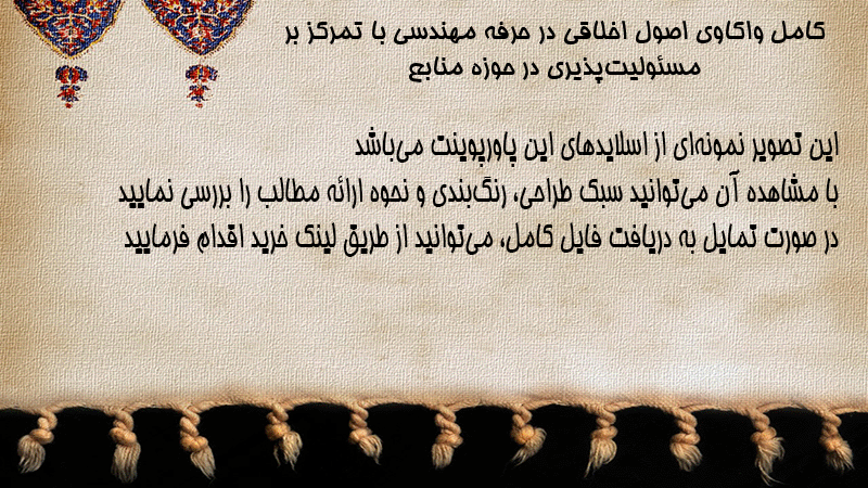 پاورپوینت کامل واکاوی اصول اخلاقی در حرفه مهندسی با تمرکز بر مسئولیتپذیری در حوزه منابع
