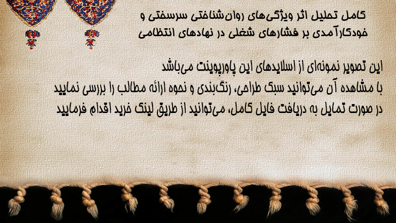 پاورپوینت کامل تحلیل اثر ویژگیهای روانشناختی سرسختی و خودکارآمدی بر فشارهای شغلی در نهادهای انتظامی