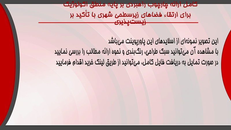 پاورپوینت کامل ارائه چارچوب راهبردی بر پایه منطق اکولوژیک برای ارتقاء فضاهای زیرسطحی شهری با تأکید بر زیستپذیری