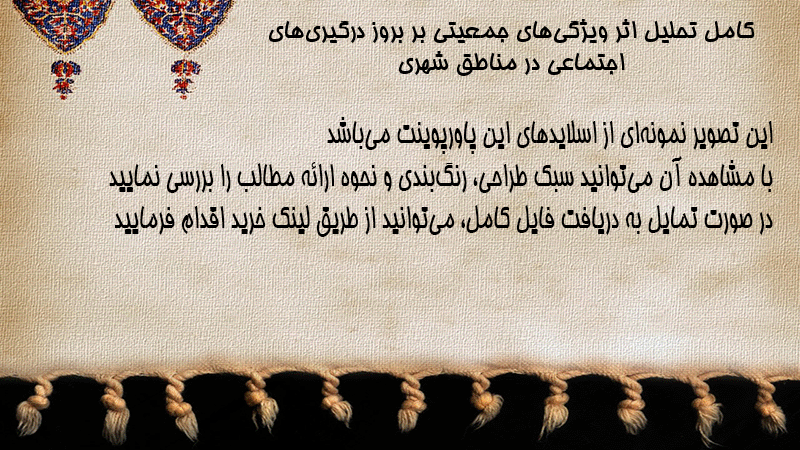 پاورپوینت کامل تحلیل اثر ویژگیهای جمعیتی بر بروز درگیریهای اجتماعی در مناطق شهری