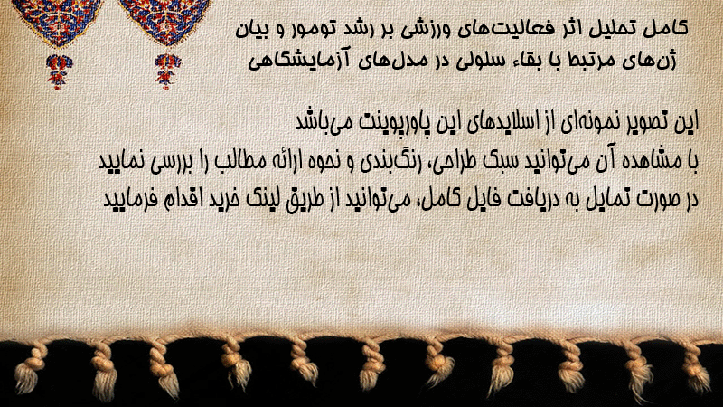 پاورپوینت کامل تحلیل اثر فعالیتهای ورزشی بر رشد تومور و بیان ژنهای مرتبط با بقاء سلولی در مدلهای آزمایشگاهی