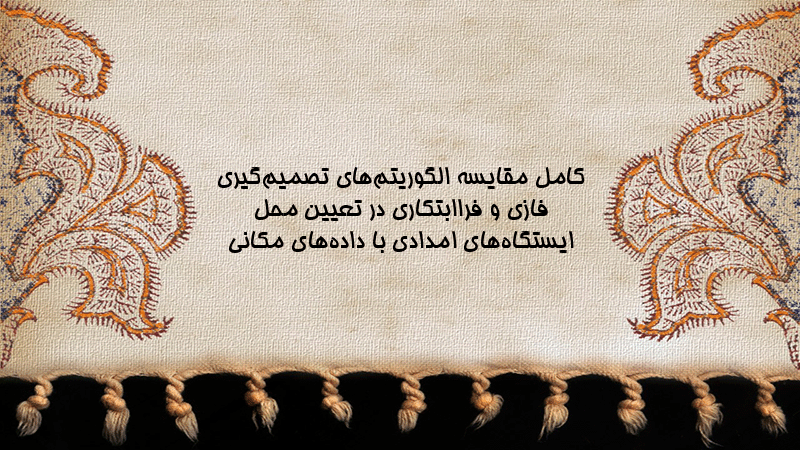 پاورپوینت کامل مقایسه الگوریتمهای تصمیمگیری فازی و فراابتکاری در تعیین محل ایستگاههای امدادی با دادههای مکانی
