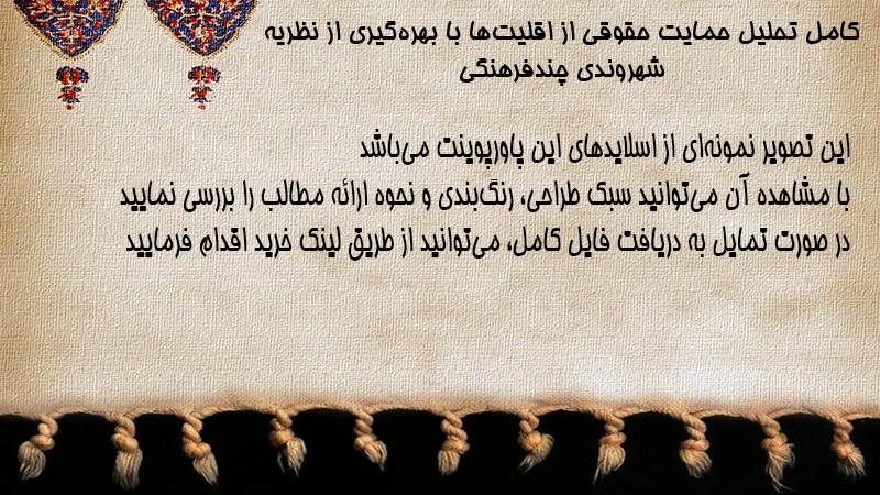 پاورپوینت کامل تحلیل حمایت حقوقی از اقلیتها با بهرهگیری از نظریه شهروندی چندفرهنگی
