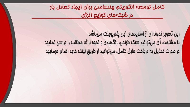 پاورپوینت کامل توسعه الگوریتم چندعاملی برای ایجاد تعادل بار در شبکههای توزیع انرژی