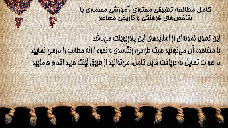 پاورپوینت کامل مطالعه تطبیقی محتوای آموزشی معماری با شاخصهای فرهنگی و تاریخی معاصر