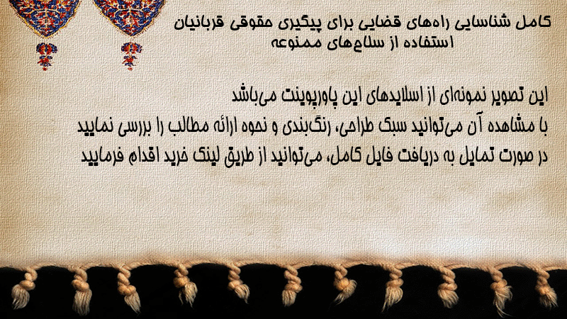 پاورپوینت کامل شناسایی راههای قضایی برای پیگیری حقوقی قربانیان استفاده از سلاحهای ممنوعه