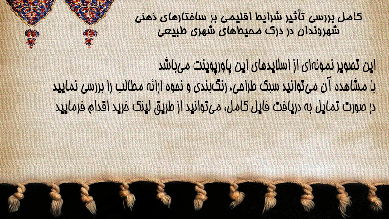 پاورپوینت کامل بررسی تأثیر شرایط اقلیمی بر ساختارهای ذهنی شهروندان در درک محیطهای شهری طبیعی