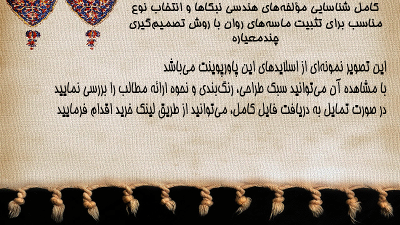 پاورپوینت کامل شناسایی مؤلفههای هندسی نبکاها و انتخاب نوع مناسب برای تثبیت ماسههای روان با روش تصمیمگیری چندمعیاره