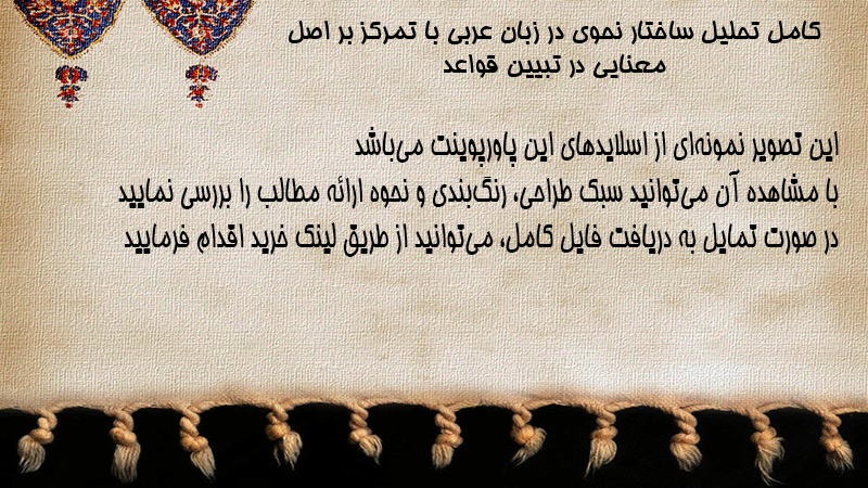 پاورپوینت کامل تحلیل ساختار نحوی در زبان عربی با تمرکز بر اصل معنایی در تبیین قواعد