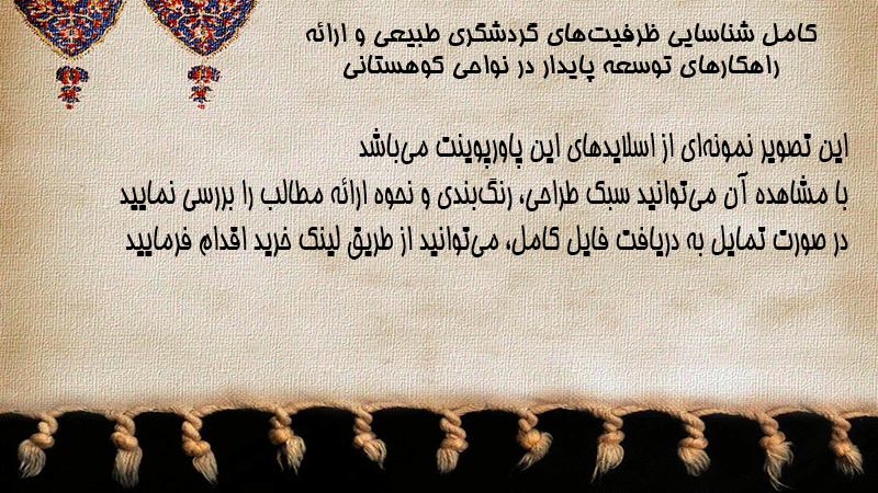 پاورپوینت کامل شناسایی ظرفیتهای گردشگری طبیعی و ارائه راهکارهای توسعه پایدار در نواحی کوهستانی