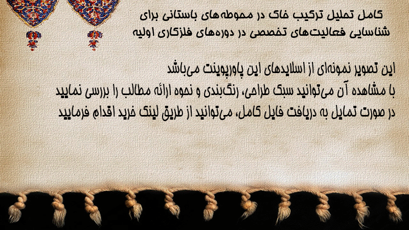 پاورپوینت کامل تحلیل ترکیب خاک در محوطههای باستانی برای شناسایی فعالیتهای تخصصی در دورههای فلزکاری اولیه