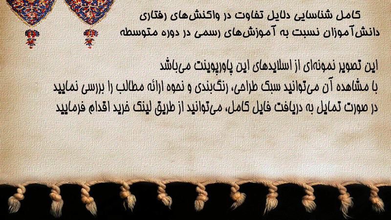 پاورپوینت کامل شناسایی دلایل تفاوت در واکنشهای رفتاری دانشآموزان نسبت به آموزشهای رسمی در دوره متوسطه