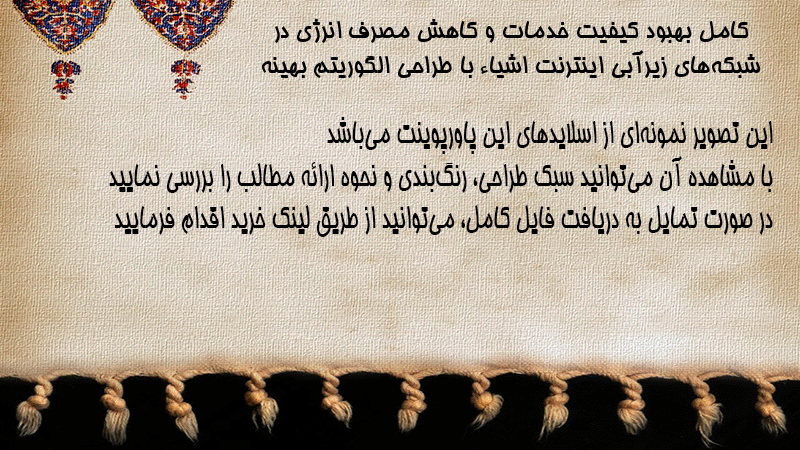 پاورپوینت کامل بهبود کیفیت خدمات و کاهش مصرف انرژی در شبکههای زیرآبی اینترنت اشیاء با طراحی الگوریتم بهینه