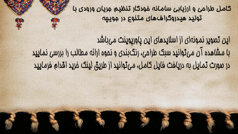 پاورپوینت کامل طراحی و ارزیابی سامانه خودکار تنظیم جریان ورودی با تولید هیدروگرافهای متنوع در جویچه