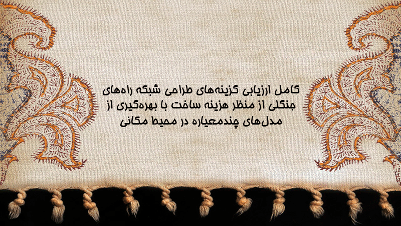 پاورپوینت کامل ارزیابی گزینههای طراحی شبکه راههای جنگلی از منظر هزینه ساخت با بهرهگیری از مدلهای چندمعیاره در محیط مکانی