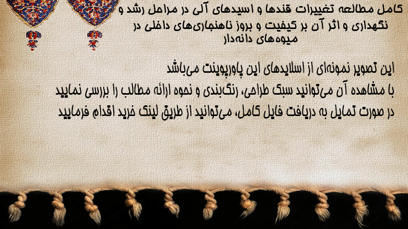 پاورپوینت کامل مطالعه تغییرات قندها و اسیدهای آلی در مراحل رشد و نگهداری و اثر آن بر کیفیت و بروز ناهنجاریهای داخلی در میوههای دانهدار