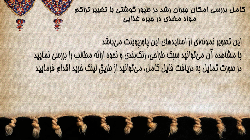 پاورپوینت کامل بررسی امکان جبران رشد در طیور گوشتی با تغییر تراکم مواد مغذی در جیره غذایی