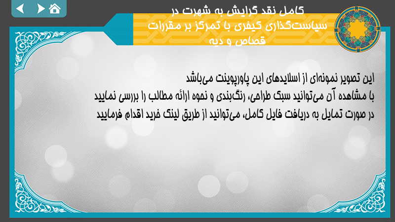 پاورپوینت کامل نقد گرایش به شهرت در سیاستگذاری کیفری با تمرکز بر مقررات قصاص و دیه