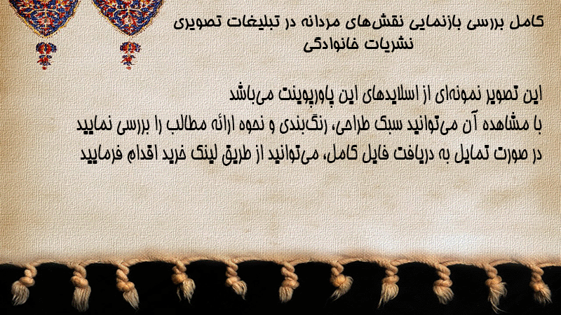 پاورپوینت کامل بررسی بازنمایی نقشهای مردانه در تبلیغات تصویری نشریات خانوادگی
