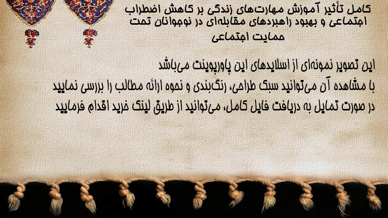 پاورپوینت کامل تأثیر آموزش مهارتهای زندگی بر کاهش اضطراب اجتماعی و بهبود راهبردهای مقابلهای در نوجوانان تحت حمایت اجتماعی