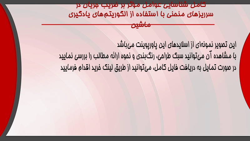 پاورپوینت کامل شناسایی عوامل مؤثر بر ضریب جریان در سرریزهای منحنی با استفاده از الگوریتمهای یادگیری ماشین