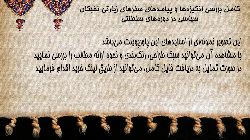 پاورپوینت کامل بررسی انگیزهها و پیامدهای سفرهای زیارتی نخبگان سیاسی در دورههای سلطنتی