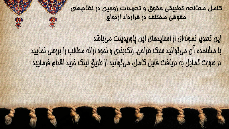 پاورپوینت کامل مطالعه تطبیقی حقوق و تعهدات زوجین در نظامهای حقوقی مختلف در قرارداد ازدواج