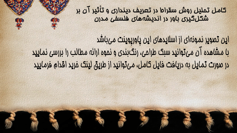 پاورپوینت کامل تحلیل روش سقراط در تعریف دینداری و تأثیر آن بر شکلگیری باور در اندیشههای فلسفی مدرن