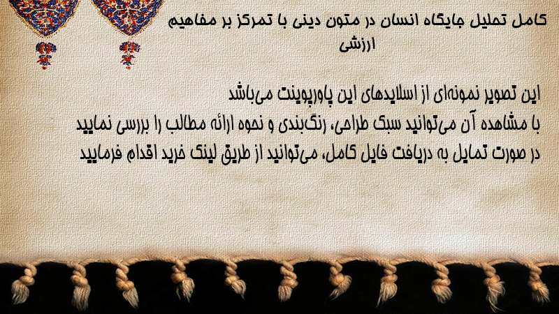 پاورپوینت کامل تحلیل جایگاه انسان در متون دینی با تمرکز بر مفاهیم ارزشی