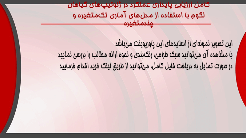 پاورپوینت کامل ارزیابی پایداری عملکرد در ژنوتیپهای گیاهان لگوم با استفاده از مدلهای آماری تکمتغیره و چندمتغیره