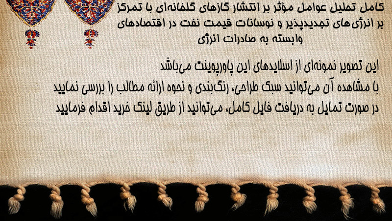 پاورپوینت کامل تحلیل عوامل مؤثر بر انتشار گازهای گلخانهای با تمرکز بر انرژیهای تجدیدپذیر و نوسانات قیمت نفت در اقتصادهای وابسته به صادرات انرژی
