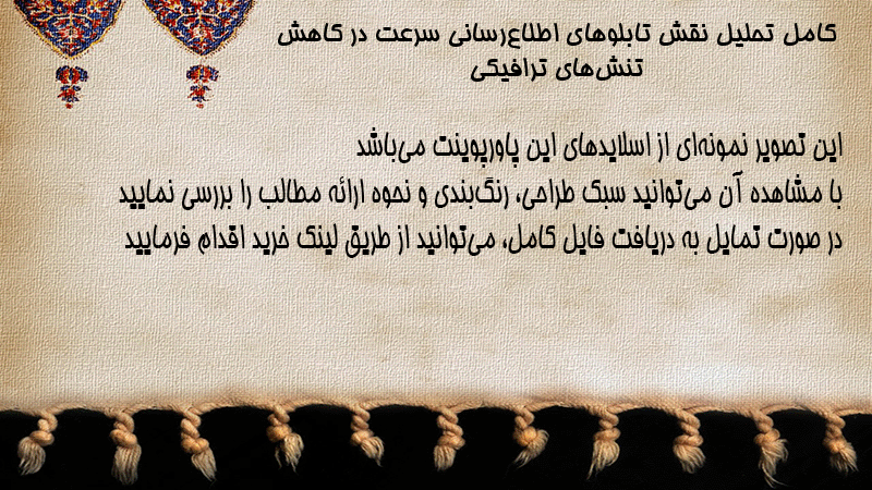 پاورپوینت کامل تحلیل نقش تابلوهای اطلاعرسانی سرعت در کاهش تنشهای ترافیکی