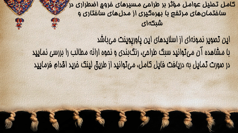 پاورپوینت کامل تحلیل عوامل مؤثر بر طراحی مسیرهای خروج اضطراری در ساختمانهای مرتفع با بهرهگیری از مدلهای ساختاری و شبکهای