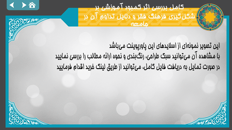 پاورپوینت کامل بررسی اثر کمبود آموزشی بر شکلگیری فرهنگ فقر و دلایل تداوم آن در جامعه