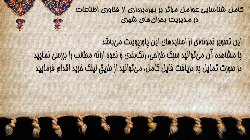 پاورپوینت کامل شناسایی عوامل مؤثر بر بهرهبرداری از فناوری اطلاعات در مدیریت بحرانهای شهری