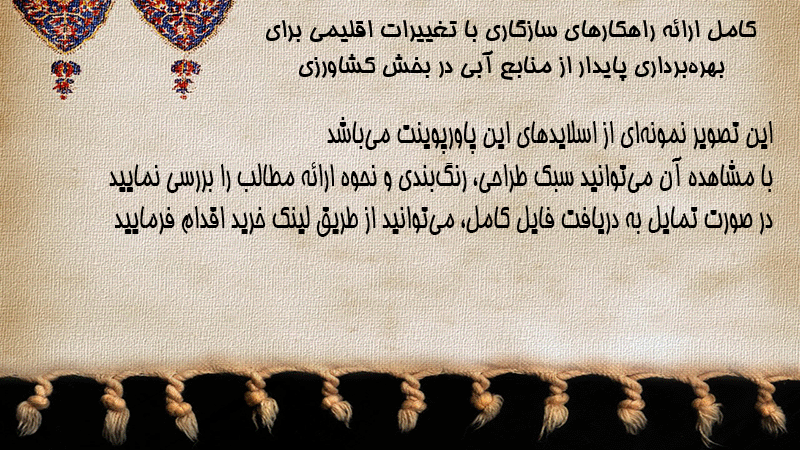 پاورپوینت کامل ارائه راهکارهای سازگاری با تغییرات اقلیمی برای بهرهبرداری پایدار از منابع آبی در بخش کشاورزی