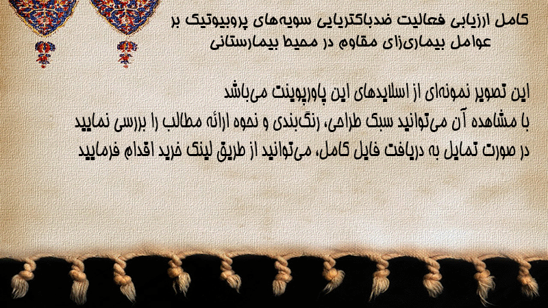 پاورپوینت کامل ارزیابی فعالیت ضدباکتریایی سویههای پروبیوتیک بر عوامل بیماریزای مقاوم در محیط بیمارستانی