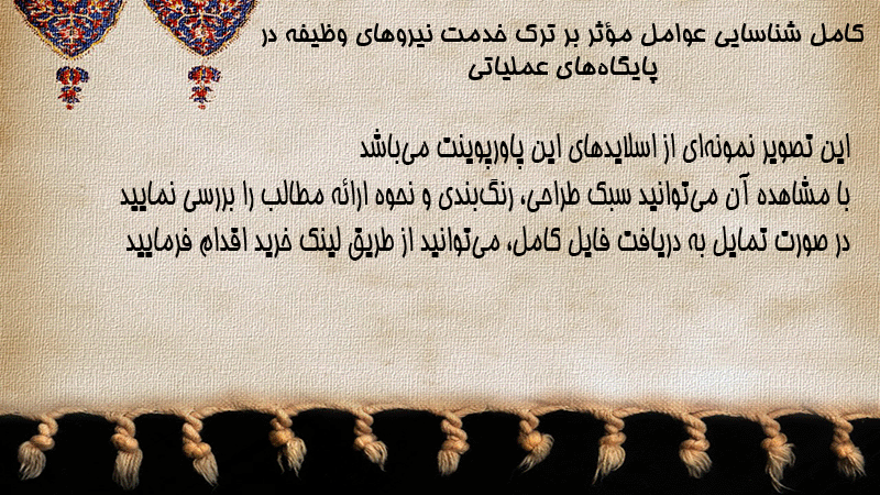 پاورپوینت کامل شناسایی عوامل مؤثر بر ترک خدمت نیروهای وظیفه در پایگاههای عملیاتی