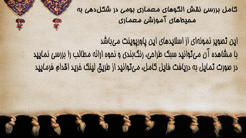 پاورپوینت کامل بررسی نقش الگوهای معماری بومی در شکلدهی به محیطهای آموزشی معماری