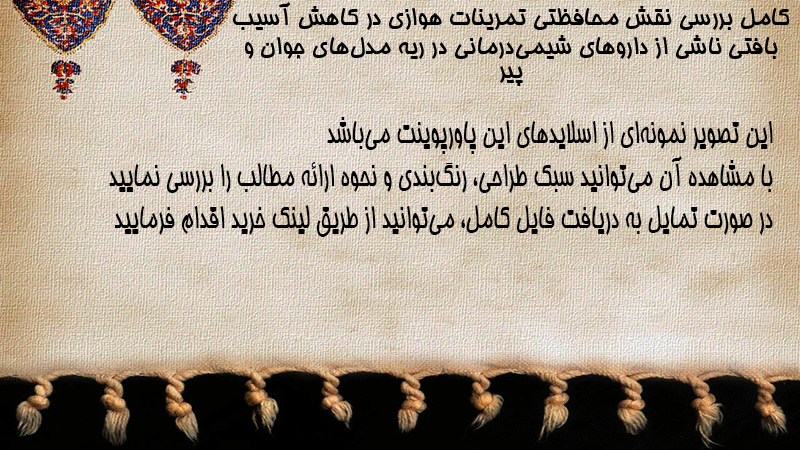 پاورپوینت کامل بررسی نقش محافظتی تمرینات هوازی در کاهش آسیب بافتی ناشی از داروهای شیمیدرمانی در ریه مدلهای جوان و پیر