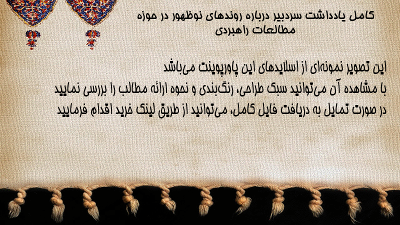پاورپوینت کامل یادداشت سردبیر درباره روندهای نوظهور در حوزه مطالعات راهبردی