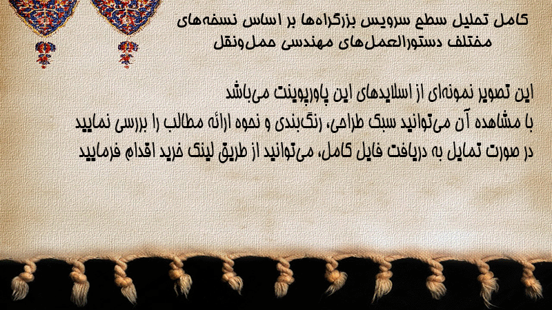 پاورپوینت کامل تحلیل سطح سرویس بزرگراهها بر اساس نسخههای مختلف دستورالعملهای مهندسی حملونقل