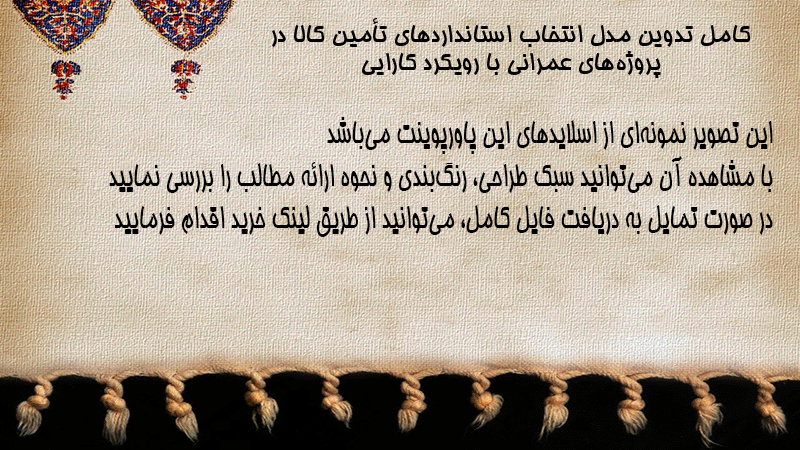 پاورپوینت کامل تدوین مدل انتخاب استانداردهای تأمین کالا در پروژههای عمرانی با رویکرد کارایی