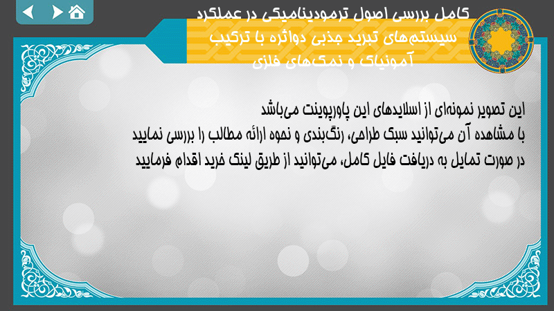 پاورپوینت کامل بررسی اصول ترمودینامیکی در عملکرد سیستمهای تبرید جذبی دواثره با ترکیب آمونیاک و نمکهای فلزی