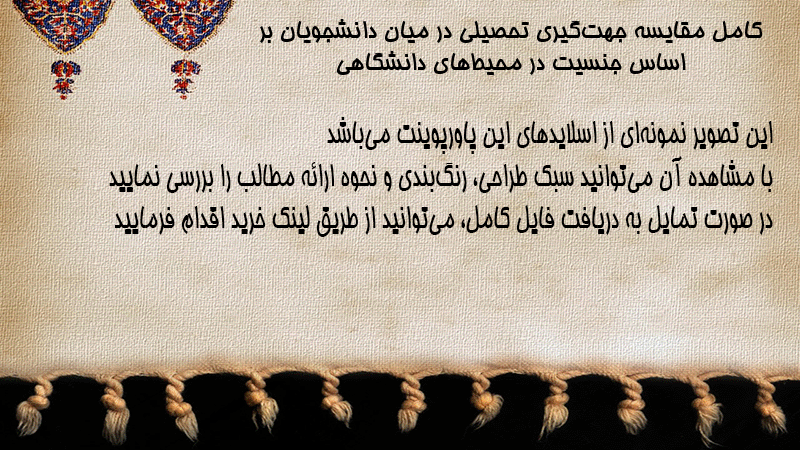 پاورپوینت کامل مقایسه جهتگیری تحصیلی در میان دانشجویان بر اساس جنسیت در محیطهای دانشگاهی