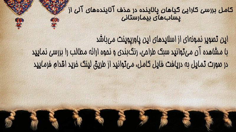 پاورپوینت کامل بررسی کارایی گیاهان پالاینده در حذف آلایندههای آلی از پسابهای بیمارستانی
