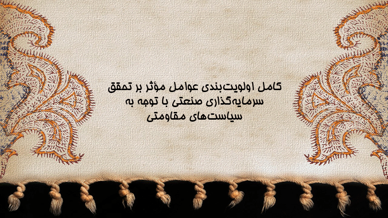 پاورپوینت کامل اولویتبندی عوامل مؤثر بر تحقق سرمایهگذاری صنعتی با توجه به سیاستهای مقاومتی