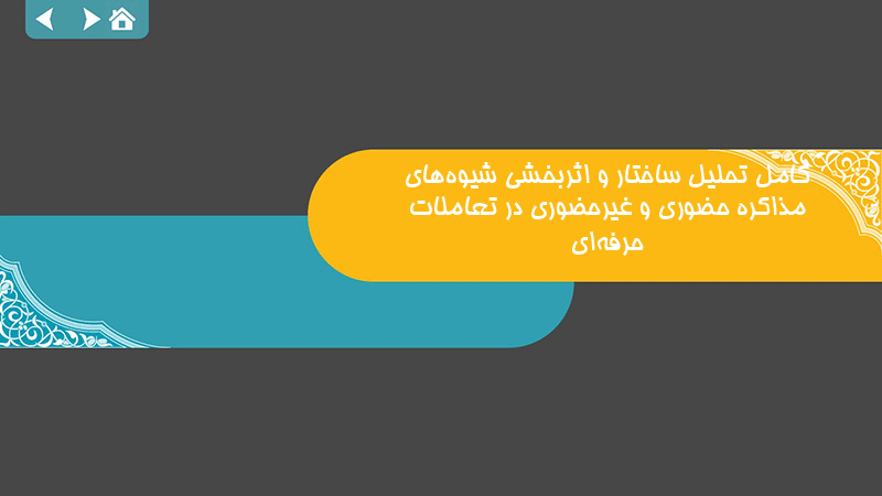 پاورپوینت کامل تحلیل ساختار و اثربخشی شیوههای مذاکره حضوری و غیرحضوری در تعاملات حرفهای